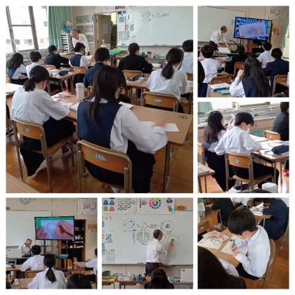1年生の美術科の授業は、”○(マル)からの発想”という内容を行いまた。まるい形からイメージを広げ、できるだけ斬新なアイデアを考えました。中には思いもよらない発想で”JR環状線”を描いた生徒がいました。