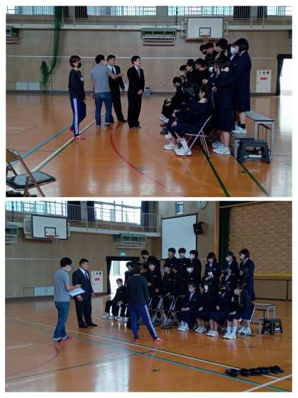 5限目、体育館で学級写真の撮影をしました。3年生から順に1年生まで撮影を行いました。生徒の撮影前には、教職員も全員揃って撮影をしました。