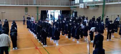 朝、体育館で生徒朝礼を行いました。先日の4月22日は柴島中学校の「創立記念日」でしたが、校長先生から中学校の歴史について話がありました。昭和22(1947)年に、東淡路小学校の校舎の一部を間借りして東淀川第6中学校として開校し、3年後に現在のところに移転し”柴島中学校”と校名が変更され今日に至っています。