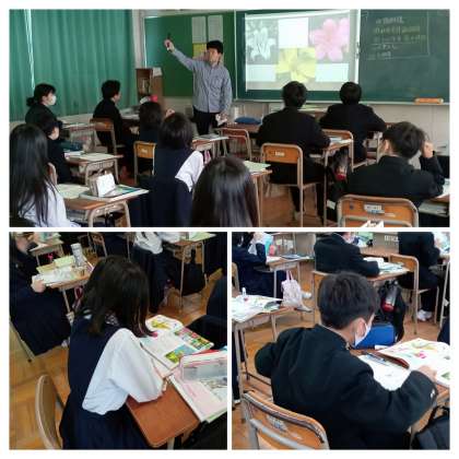 1年生の理科の授業は”花のつくり”について学習しています。花弁、がく、おしべ、めしべなどの名称やどのようなつくりになっているかを学びました。