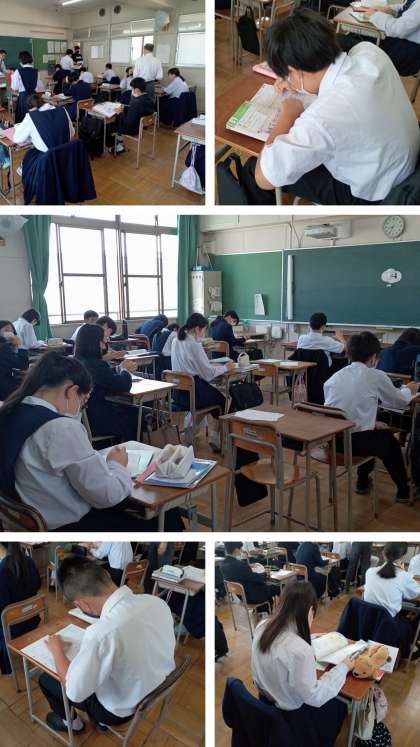 明後日に中間テストを控え、朝の学活時で学習を行っています。各自が静かに黙々と自分の課題に取り組んでいました。この小さな積み重ねがテスト結果に表れることを願っています。