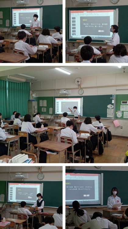 2年生の国語科の授業は、短歌を学んだ最後に”短歌”を作りました。今日はその短歌に込められた気持ちや様子を一人ひとりが発表し、みんなで短歌を鑑賞しました。思いがこもったもの、ユニークなものなど素晴らしい短歌がたくさんあり、すぐにでも「特待性!?」になれそうです。