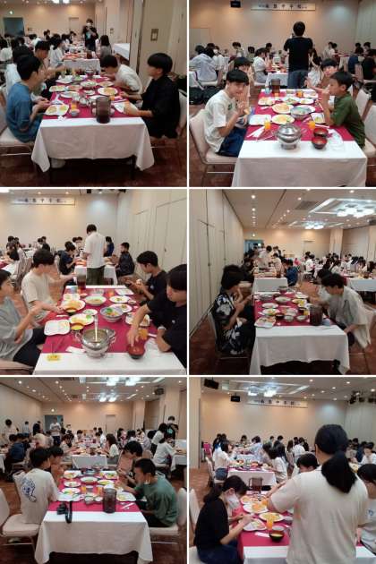 今日の一日の活動に備え、しっかり食べましょう。いただきます。