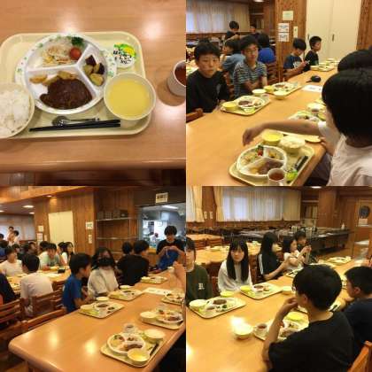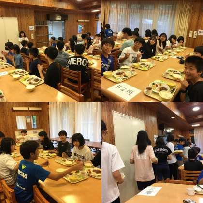 夕食の時間です。お腹すいたと言っていた生徒たちは、モリモリ食べています。おかわりもたくさんして、完食しました。