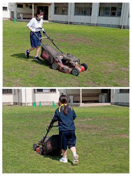 2年生の職場体験も最終日(3日目)になりました。新大阪駅の雑貨屋が今日は休みなので、柴島中学校で環境美化の体験をしました。グラウンドの芝生に生えた、雑草などを刈っていました。