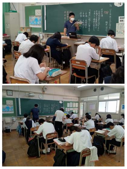 2年生の国語科の授業は、説明文「100年後の水を守る」の学習をしています。今日は教育アドバイザーの方に授業を参観いただきました。