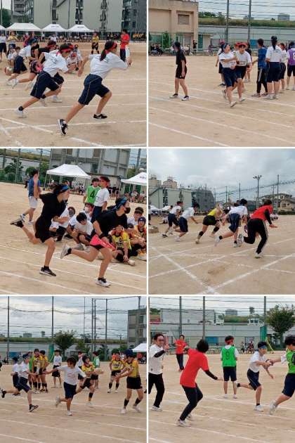 クラブ対抗リレー、男子のレースには教員チームが参加しました。