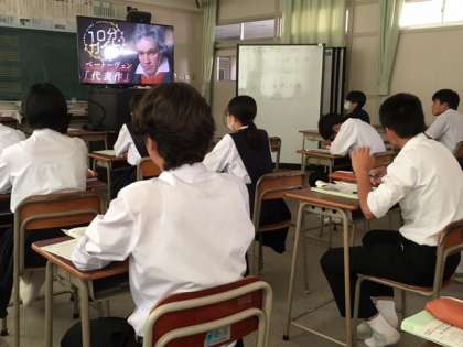 2年生は、音楽の授業で偉大な作曲家のベートーヴェンを学びました。