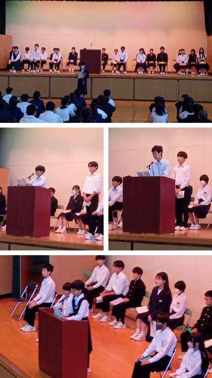 6限目、体育館で「生徒会役員立会演説会」を行いました。どの立候補者と応援者からも”柴島中学校をもっと良くしたい”との思いが伝わる演説でした。この後、教室で投票になりますが、会長・副会長・書記は信任投票で、執行委員においては複数の立候補があったので決選投票になります。