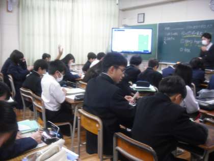大画面に映った教科書の本文を見ながら、本文を聞き繰り返して全員で読みました。