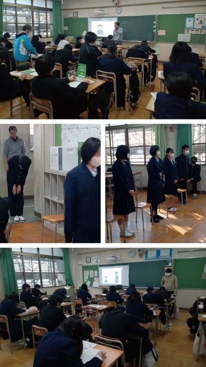 5,6限、3年生は面接に向けての事前学習をしました。面接について、話し方や座り方、入退室の仕方など動画で学んだ後、グループごとに入退室の練習をしました。3学期には校長先生の面接練習を行う予定です。