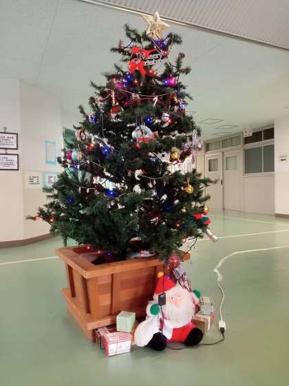 12月に入りグッと寒くなってきて、めっきり冬らしくなってきました。長かった2学期も残り2週間余りとなりもうすぐ冬休み、玄関ピロティには生徒会役員で飾り付けをしたクリスマスツリーが飾られました。