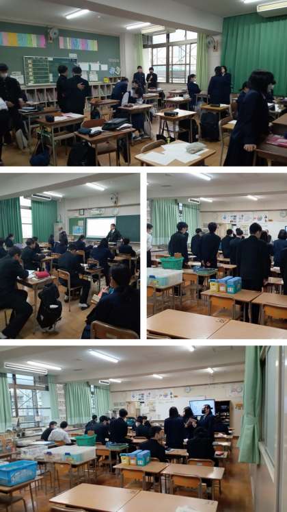 今日は『ノーチャイムデー』とし、授業の始まりや終わりのチャイムが一日鳴りません。チャイムが鳴らないことで、一人ひとりが自主的に行動することを目的にしています。休み時間は友だちとしゃべったりして自由に過ごしていますが、開始時刻には自分の席に着席をして授業が始めることができる状態になっていました。
