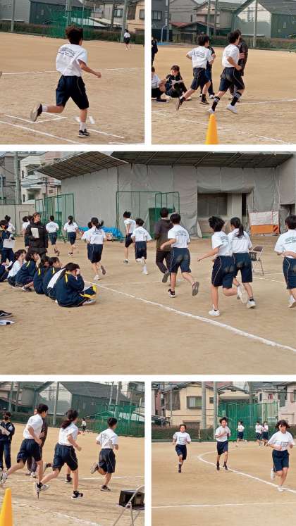 1年生の体育科の授業は”長距離走”を行っています。今日は2グループに分けて1週150mのトラックを10周して、1500mを計測しました。気温の低い中でしたが、半そで半パン姿で最後まで走り切っていました。