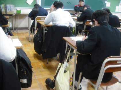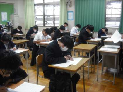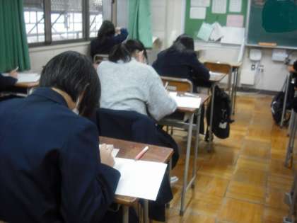 3年生は、中学校で受ける最後の定期テストとして学年末テストが行われました。1日目の今日は、1限「社会」2限「国語」3限「英語」の3教科のテストに挑みました。私立高校の入試まで3週間を切り、テストに向かう姿には、緊張感がありました。