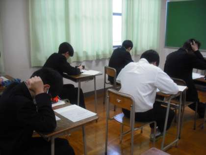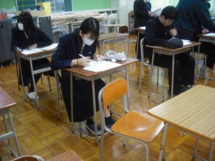 3時限目、3年国語の授業では、私立高校の入試に向けた「文法」対策チームと「四字熟語・ことわざ・慣用句・故事成語」の問題チームに少人数授業に分かれました。