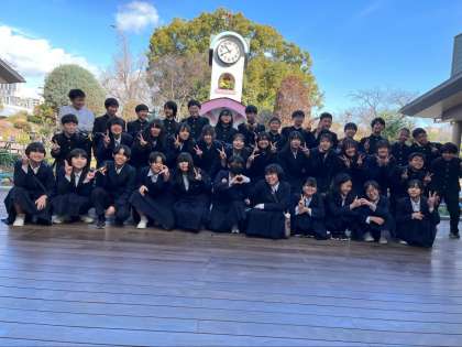 飼育員さんから話を聞いた後、全員で記念写真を撮りました。飼育員になるためにはどのような勉強をしなければならないかのお話以外に、フラミンゴやチンパンジーの逃げたお話なども聞きました。生徒からもいろいろな質問が出てとても有意義でした。