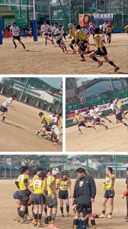 ラグビー部は茨田北中学校を会場に行われた、北地区新人戦の3位決定戦で菫中学校と対戦しました。立ち上がりにトライとゴールも決め先制しましたが、その後2トライを奪われリードされ前半が終了しました。後半は何度もチャンスがありましたがトライを奪えず、逆にトライを許し、最後は力尽きました。1人少ないメンバーでしたが、ここまでよく健闘しました。