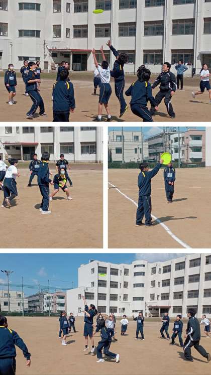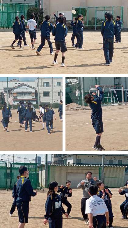 3種目目は”アルティメット”(フリスビーを使ってアメフトとバスケットボールを足して2で割ったような競技)を行いました。初めてやる競技で、初めは戸惑いながらでしたが、だんだんフリスビーを投げるのにも慣れ白熱した勝負になりました。