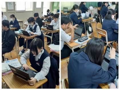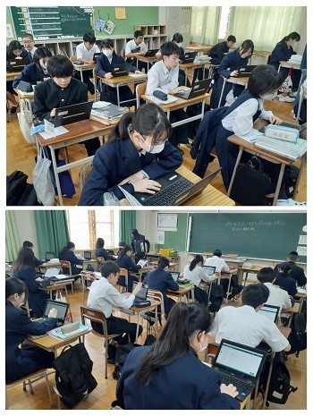 昨年度までは、紙の質問紙に、マークシートで回答していたのですが、今年度からは、学習者用端末を活用してのオンラインでの回答となりました。
