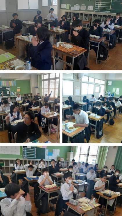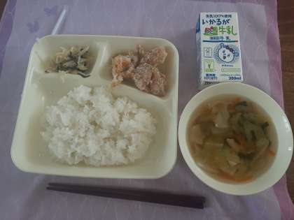 鶏肉のから揚げは、しょうが汁、にんにく、塩、コショウで下味を付けた後、でん粉をまぶして、カラっと揚げられていました。どのクラスでも大人気で、倍の量を欲しがっていました。