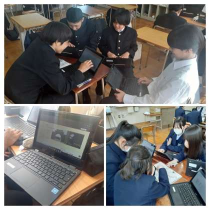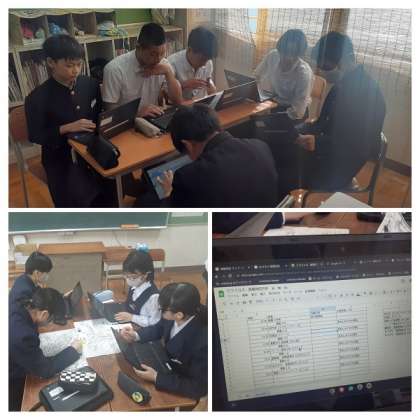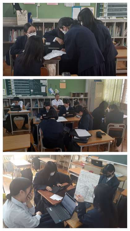 学習者用端末を使ってインターネットで情報検索し、名所旧跡を巡ったり、お土産を買ったり、お昼ご飯を食べたり、カフェに立ち寄ったりと、班のメンバーで相談して行程を決めていきました。決まった行程は、事前にClassroomで配布されているシートに入力していき共有します。