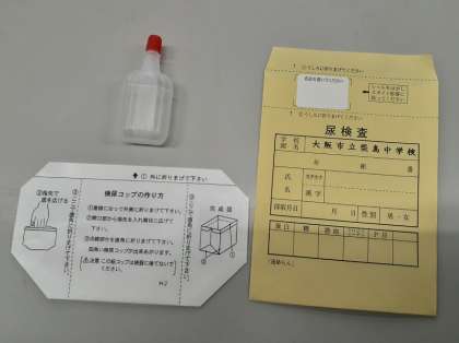 今日、プリントと検尿のセットを配付しました。プリントをしっかり読んで、できるだけ明日の朝に提出できるよう、準備しましょう。