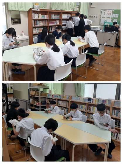 生徒たちは、給食の片づけが終わると、図書室にやってきて、思い思いの本を手にとって、予鈴まで静かに読書を楽しんでいました。