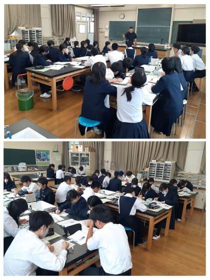 生徒はワークシートに自分の意見や考えをまとめたり、グループで協議して意見をまとめたりし、発表して全体で共有しました。
