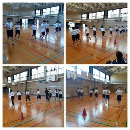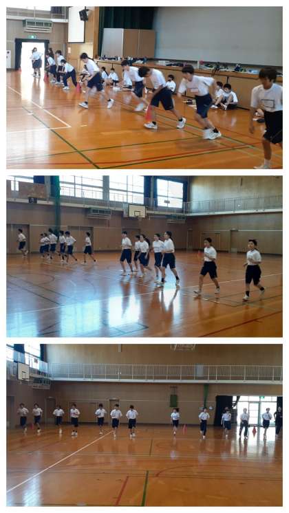 2年生の体育、新体力テストでのシャトルランの様子です。