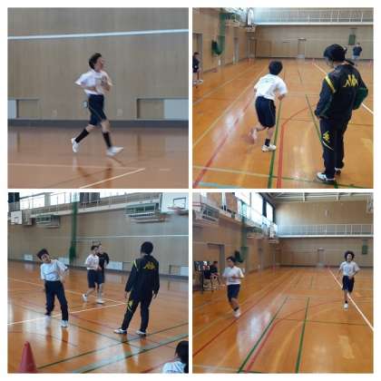 体育館での実施で、持久力を測定します。20mの距離を電子音に合わせて往復ランニングを行いますが、ランニングスピードは、回数を重ねていくとどんどん早く、レベルアップしていきます。2回、そのスピードレベルに遅れてしまうと失格、測定終了となります。