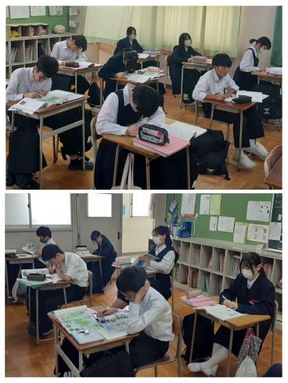 新たな題材「おくのほそ道」(松尾芭蕉)に進みました。「古文」の「紀行文」にあたるジャンルとなります。今日は1回目なので、松尾芭蕉さんが弟子ともに旅をした道のり・訪れた場所、期間(約150日程の旅だったそうです)などの背景、歴史的な「俳諧」から「俳句」への変遷なども学習しました。