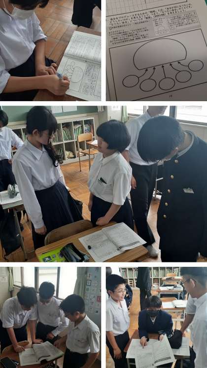 後半は、自身の考えを形成するために「クラゲチャート」を使いました。「なりたい自分」が「クラゲの頭」で、「戦略」が「クラゲの足」になります。記入後は、クラスのみんなで相互共有もしました。