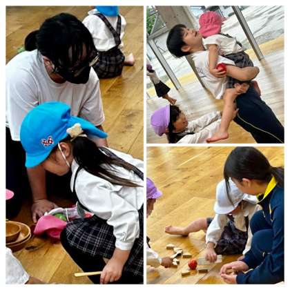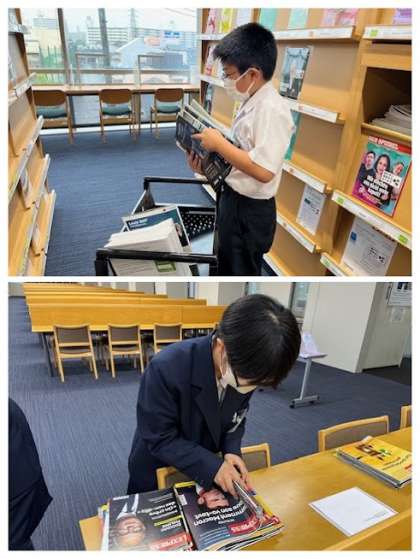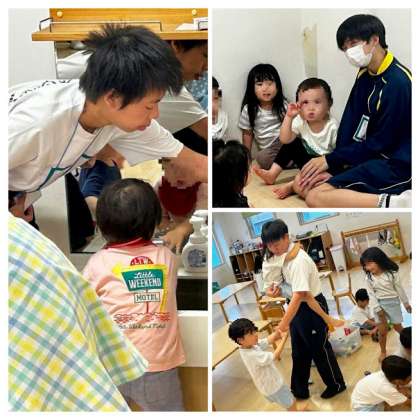 写真は「大経大図書館」「淡路幼稚園」「淡路保育園」での様子です。