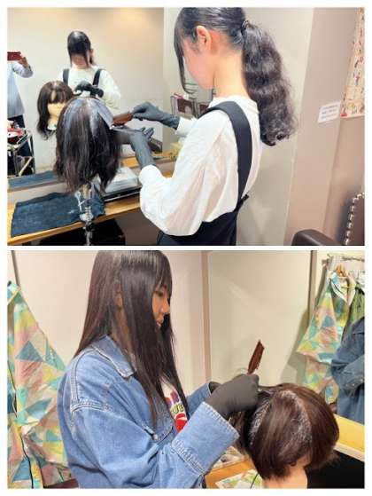 写真は「大阪王将(淡路店)」「聖愛園」「リルバイスニップ(美容室)」での様子です。