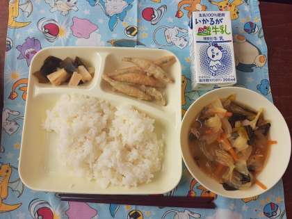 みそ汁は、鶏肉、小松菜、キャベツ、玉ねぎ、人参が具材で、今日も昆布と削り節からの出汁、赤みそと白みその合わせみそのみそ汁でした。