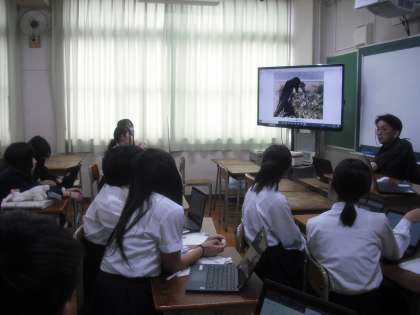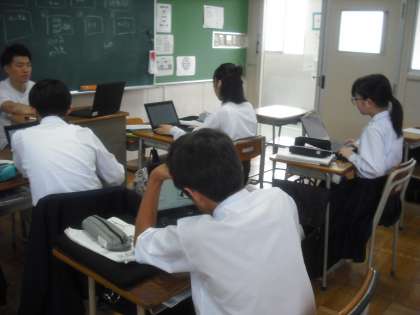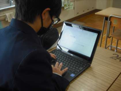 2年生は、3日間の職場体験を終え、今日の5,6時限目は、各事業所ごとに集まり、職場体験を振り返りました。お世話になった事業所の方々へお礼状を書きました。それが終わったところは、次に職場体験学習の発表に向け、学習者用端末を使ってスライドの制作に入りました。