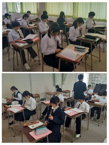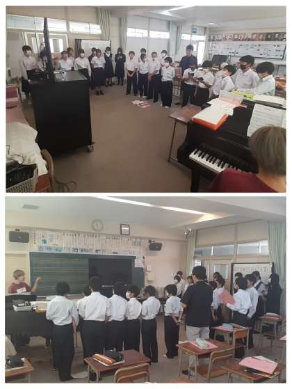 そして、授業の最後には、「柴島中学校の校歌」の合唱練習でした。まだまだ、生徒手帳やファイルの歌詞を確認している生徒もいますが、大きな声でしっかりと歌えるようになってきたと思います。早く、歌詞もメロディーもきちんと覚えてくださいね。