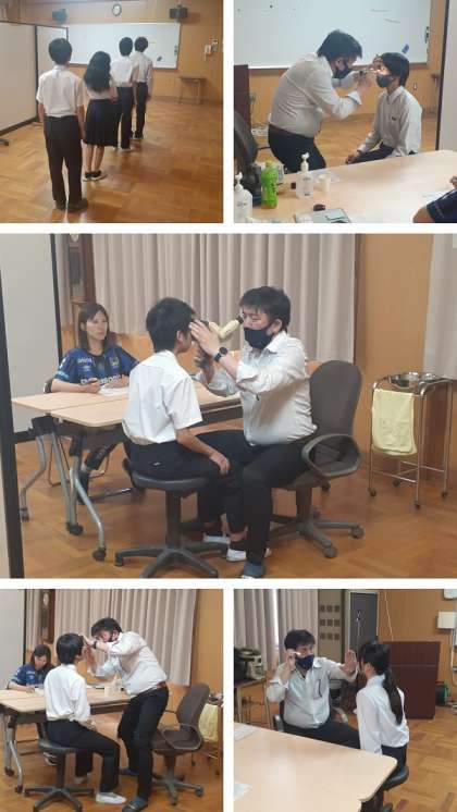 午後1時30分より、2年1組Aと3年生が眼科検診を行いました。