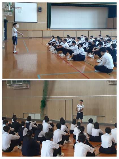 3年生学年集会 実習生からのメッセージ(6月7日)