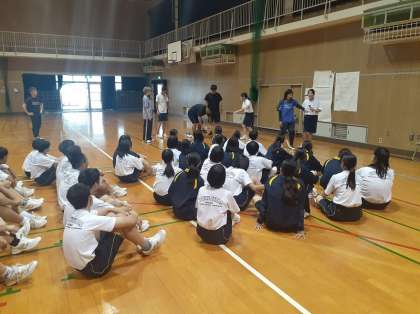 5時間目は「球技大会(バレーボール)」で、A・B・Cのチーム編成をし、ルールも普通のルールから、難易度を下げたルールも設定し、みんなが楽しめるゲームでした。最後には、先生チームと生徒代表チームでの試合でした。