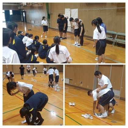 6時間目は「お楽しみ会」で、「人間知恵の輪」「新聞ひっくり返しゲーム」「缶(ペットボトル)蹴り」をしました。先生方も参加し、笑顔・笑い声一杯の1時間でした。