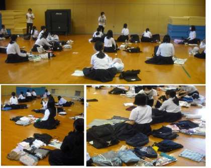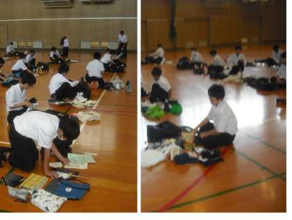 また、体育館と格技室に分かれて、荷物点検をしました。大きなカバンから、荷物を出して並べ、1つ1つ確認しました。明日からの活動が楽しみですね。