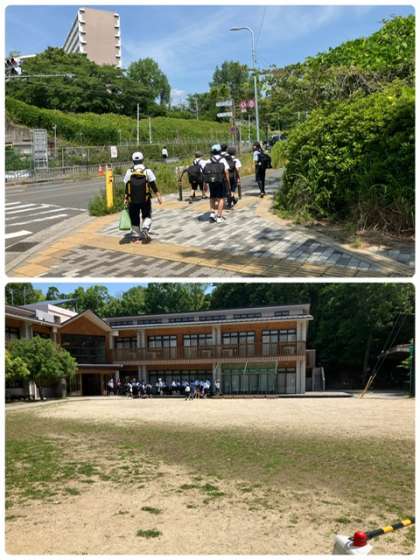 1年生は、元気に登校し、出発式の後、グループごとに出発しました。柴島駅から北千里駅へ到着。北千里駅からワクワクの郷へ向かいました。
