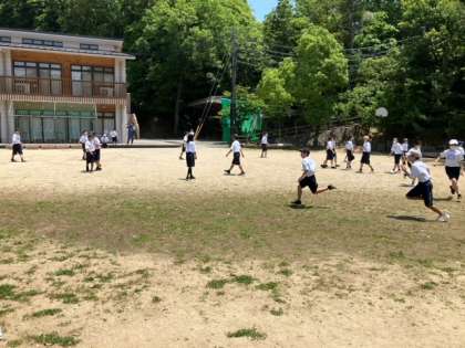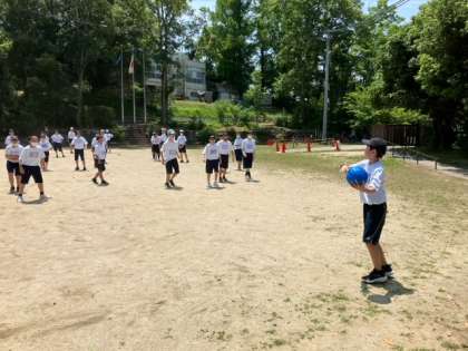 ドッジボール、だるまさんが、鬼ごっこ、いろいろステップの4種です。声をかけたり、応援したり、走り回っていました。