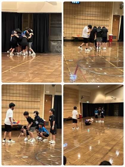 クラスミーティングが終わり、生徒たちは、多目的ホールに集まり、全体レクリエーション2が始まりました。