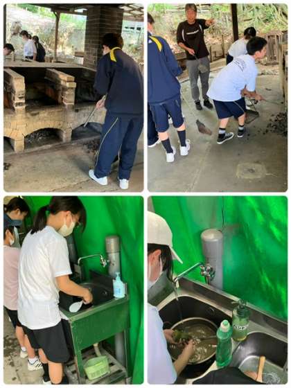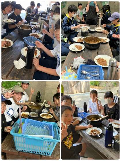 カレーライスができあがり、美味しくいただきました。食べた後は、片付けに取りかかりました。
