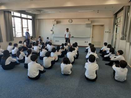 今日のお話は、やはり、一泊移住の振り返りでした。「協力する」という言葉について、改めて意味を考えてみました。「助け合う」「困っている人がいれば手を差し伸べる」「自分にまかせられた仕事を全うする」などですが、「人に優しく」なれるには、まず、自分自身に余裕があることが前提です。自分に余裕がないと、ついつい、他者へ厳しく当たってしまいます。他者への思いやり、相手の立場に立って行動するには、自分のことをきちんとやって、余裕を持つことが大切です。来週の「あたりまえ学習フィールドワーク」にむけて、今日の6時間目も協力して取り組みましょう。