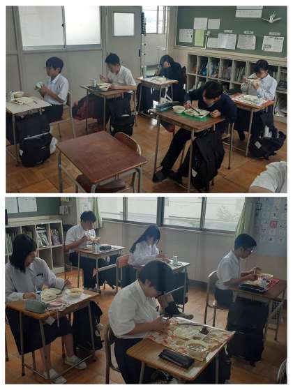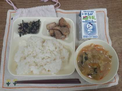 鶏肉の照り焼きは、料理酒、みりん、砂糖、しょうゆで下味をしっかりと浸み込ませてから、焼き上げられていました。生徒にも人気で、この配膳量の2倍は欲しいと嘆いていました。