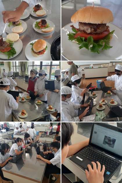 完成後は、学習者用端末でおいしそうに見えるように、アングルも考えて撮影しました。